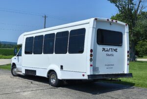 - Standing while bus is in motion could cause passenger injury. Playtime is not responsible for any injuries due to a passenger that stands while the bus is in motion